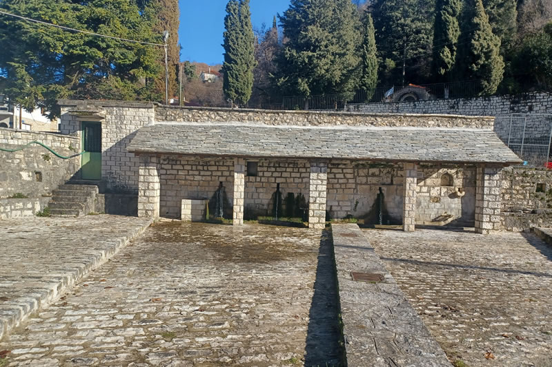 Βρίσκεται στο κέντρο του Δελβινακίου, απέναντι από την κύρια είσοδο του κεντρικού Ιερού Ναού «Κοίμησης της Θεοτόκου». Χτίστηκε το 1619, σύμφωνα με εντοιχισμένη επιγραφή. Σημείο αναφοράς του Δελβινακίου διότι αποτελούσε το μοναδικό σημείο ύδρευσης. Ο Ζαγορίσιος ιστορικός Ι. Λαμπρίδης γράφει: «το Δελβινάκι υδρεύεται εκ μίας και μόνης πηγής, αενάου όμως και τετρακρούνου». ​